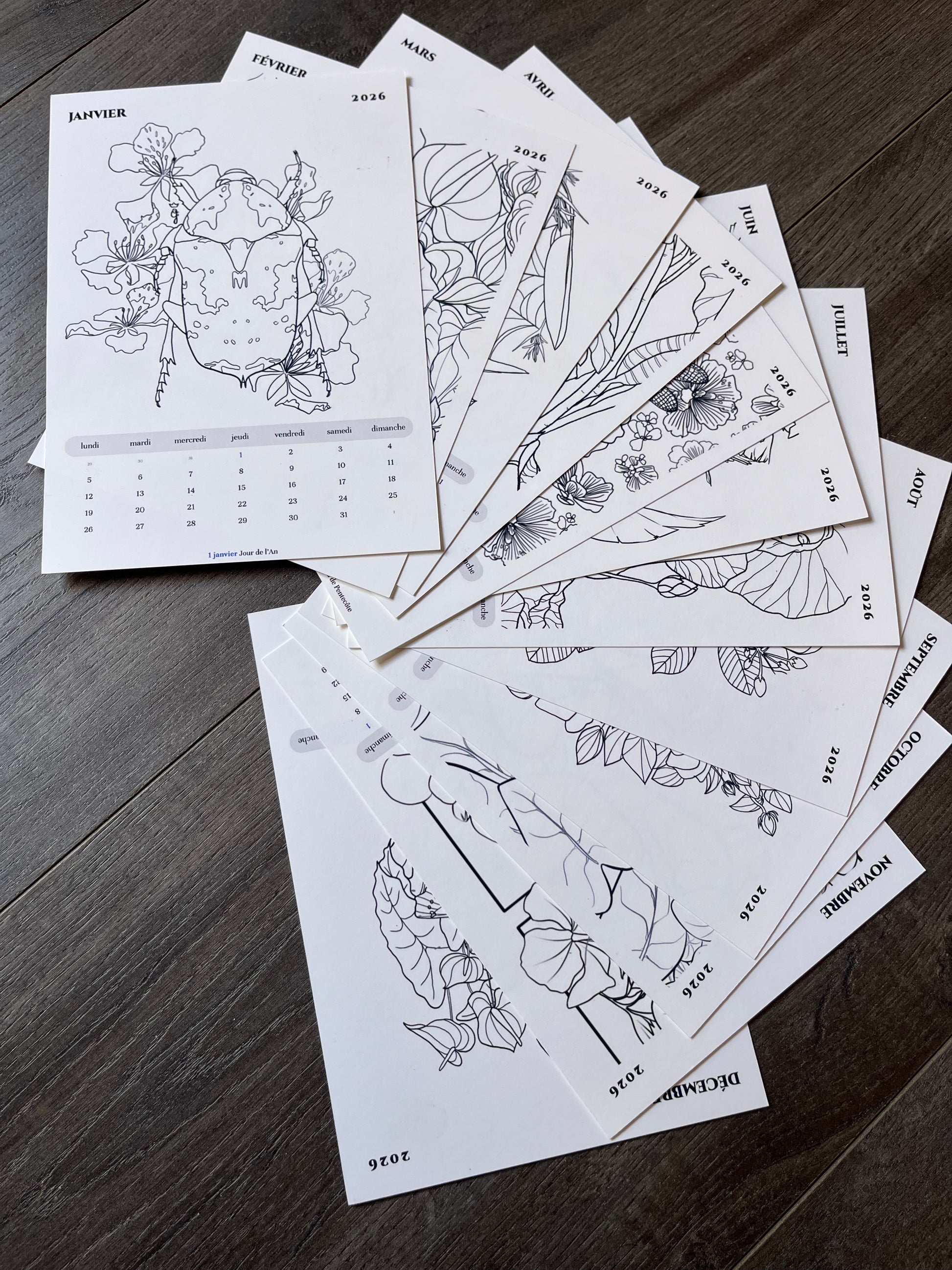 Calendrier 2026 à colorier